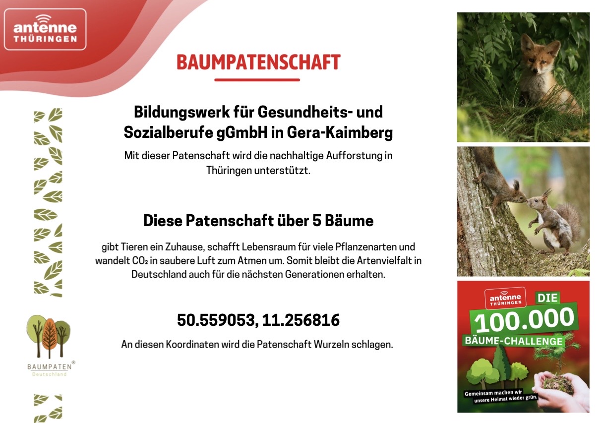 Die diesjährige Baumpflanz-Challenge hat uns letzte Woche nicht nur motiviert, selbst aktiv zu werden, sondern noch einen Schritt weiter zu gehen! Gemeinsam haben wir nicht nur neue Bäume gepflanzt, sondern gleich noch eine Baumpatenschaft in einem Thüringer Wald übernommen. Damit möchten wir zeigen: Jeder kleine Schritt zählt – ob durch eigenes Pflanzen oder durch die Unterstützung von Projekten, die unsere Wälder langfristig stärken.